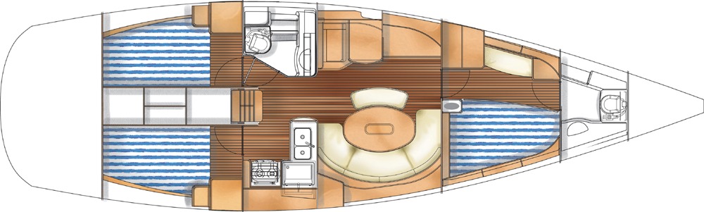 Based on the world-renowned First 40.7 – winner of the IMS World Championship, and most recently, overall winner of the Sydney Hobart Race – Beneteau introduces the all new First 44.7. Innovations abound including the new Lewmar “Y-spoke wheel”, hi-tech aluminum winches, a bigger and brighter interior, and a unique adjustable settee adjacent to the dinette.