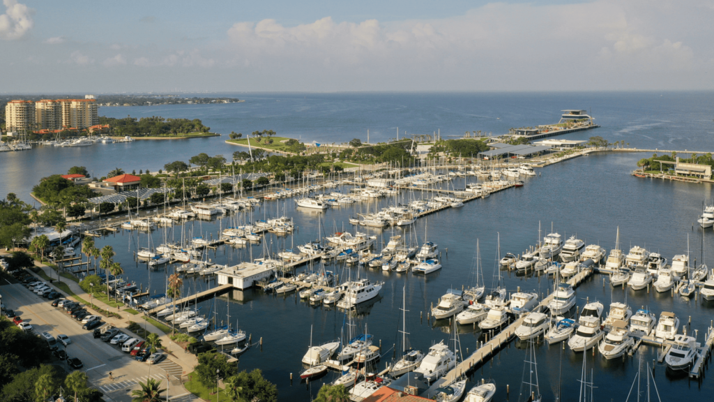 St. Petersburg Municipal Marina sits at the heart of downtown St. Petersburg’s waterfront, just steps from our new West Florida office and the revitalized St. Pete Pier. Surrounded by the city’s best restaurants, museums, and nightlife, you’re guaranteed to have a good meal and something to do within a short walk. It’s one of the most conveniently located marinas on Florida’s Gulf Coast, offering boaters the rare combination of urban access and protected docking right on the western side of Tampa Bay.