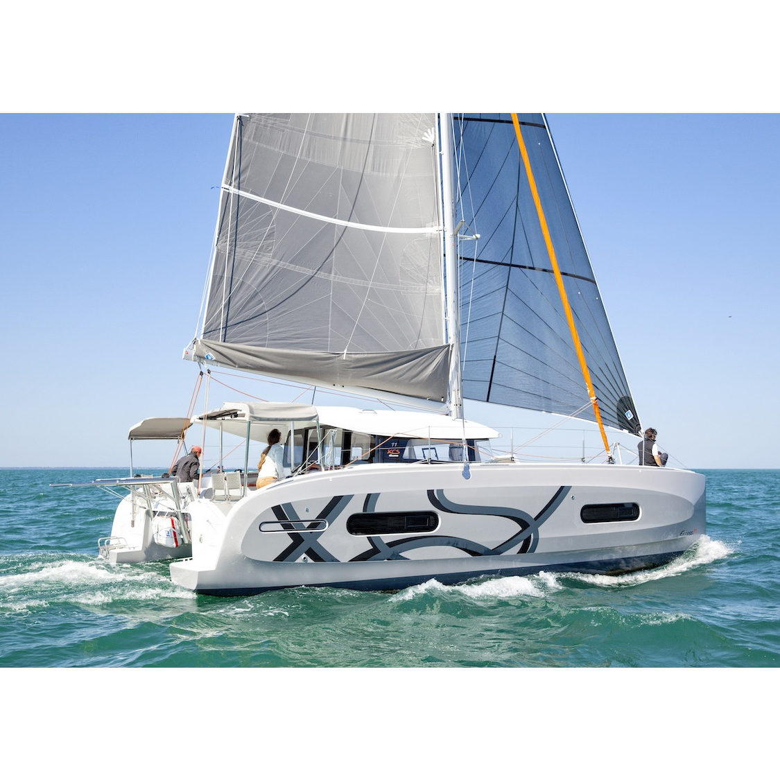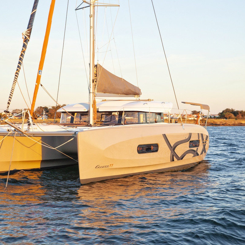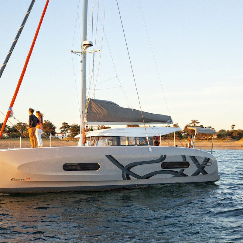 The Excess 11 is the only large-scale production boat on the market for this size of catamaran. She is one of the smallest cruising catamarans capable of offering so much comfort and space, not to mention the thrill of sailing. The Excess 11 is a boat capable of long passages and is made for life on board. The work of the naval architects and designers has been focused on one objective: to create a real cruising catamaran capable of taking you to the most remote spots on earth to enjoy an isolated cove, an abandoned beach or a secret wave.