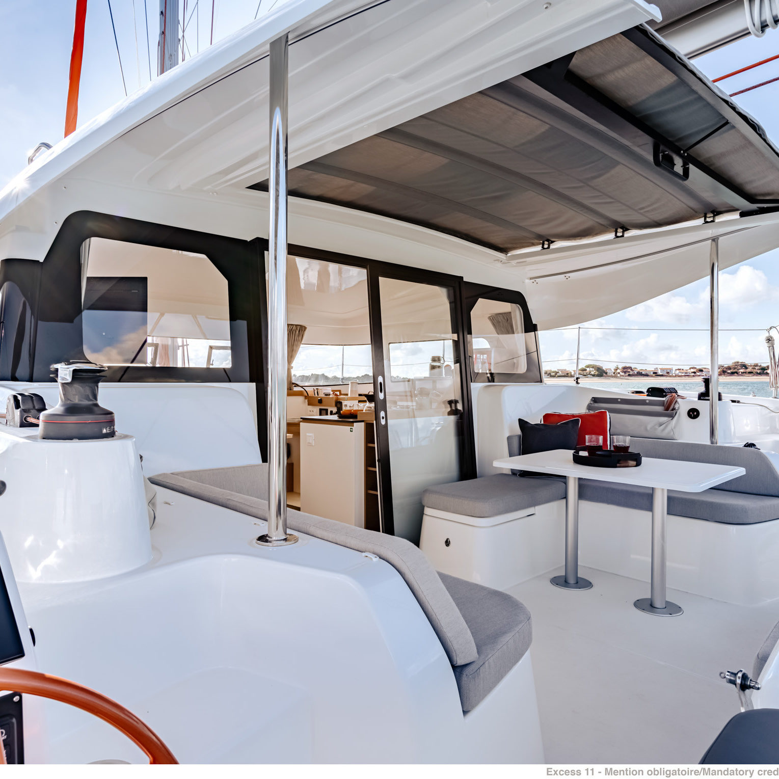 Like all the catamarans of our range, EXCESS 11 is for those who dream of a cruising catamaran that provides real sailing sensations. The view from the helm, the finesse of the sail trimming, the friendliness of the cockpit, the sliding sunroof, allow the whole crew to fully live the experience on board.