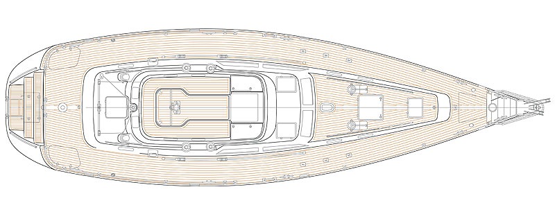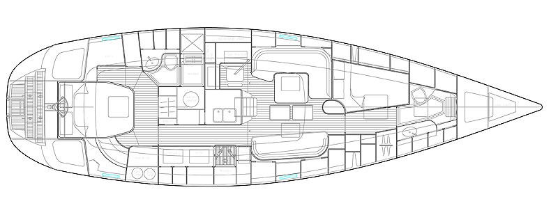 - Design Lines: The hull combines a fairly fine forward entry with a wider stern to boost interior volume without compromising performance. German Frers knows how to design an efficient and balanced hull.