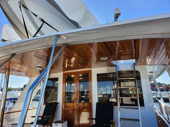 At the other end of the lineup stood the Island Gypsy 57, a true flagship for the brand and a showcase of what Kong & Halvorsen could achieve at scale. Designed for serious coastal and offshore cruising, the 57 blended the rugged seaworthiness of a traditional trawler with the luxury and volume of a motoryacht. Her semi-displacement hull, twin-diesel power, and long-range efficiency made her equally capable on bluewater passages or as a comfortable liveaboard. Like all Island Gypsys, the 57 emphasized hand-finished joinery and thoughtful engineering, offering a level of craftsmanship that rivaled much more expensive yachts of the era. Today, well-maintained examples of the Island Gypsy 57 remain highly sought after for their proven performance and timeless lines.
