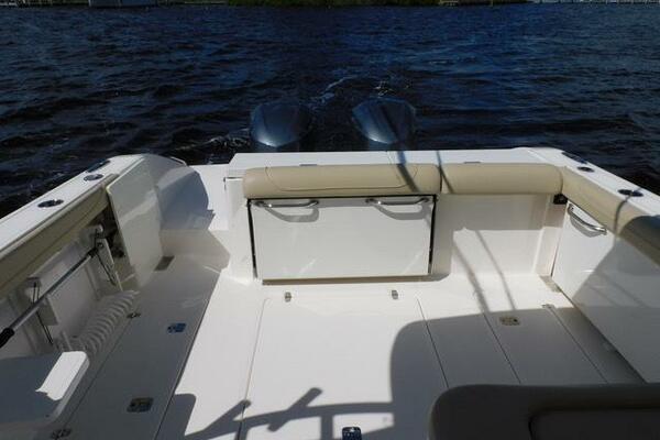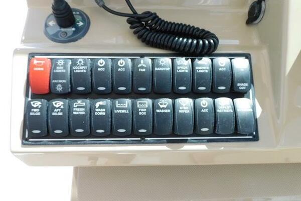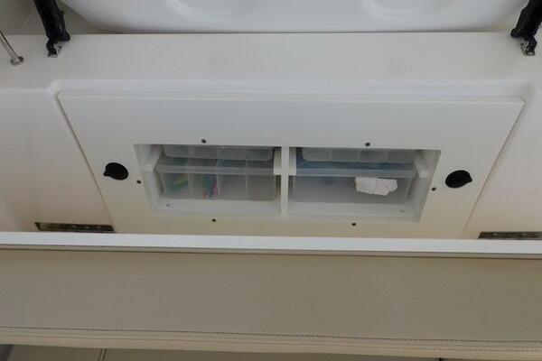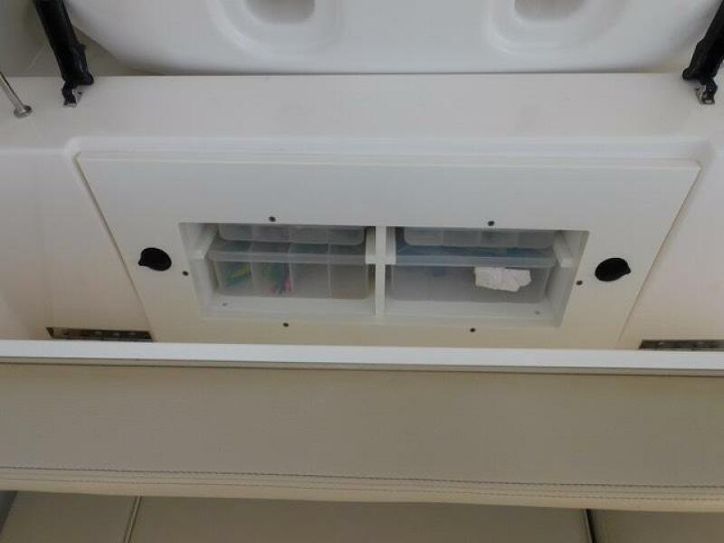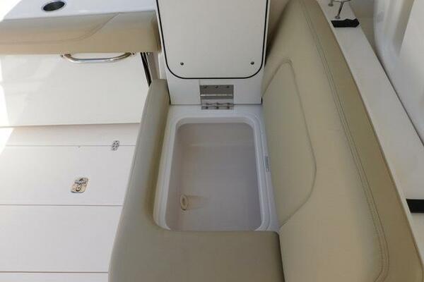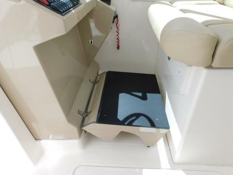 - Port and starboard forward coaming boxes with four (4) drink holders, grab rails, courtesy lights, storage keeper, port stereo remote, and speakers
