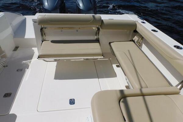 - Molded forward bow seating with flip-down armrests and insulated storage below