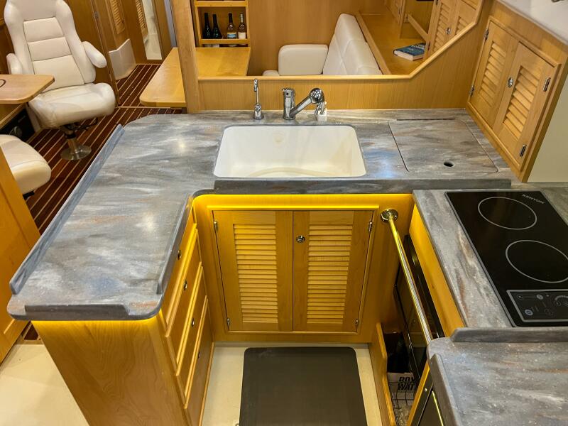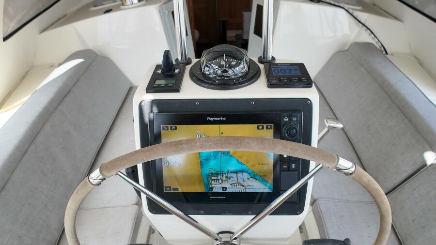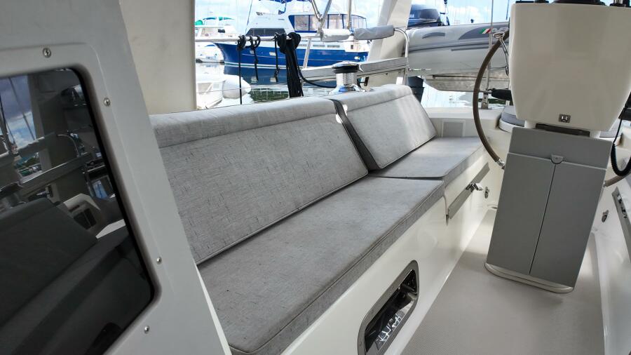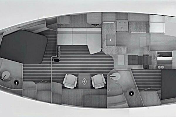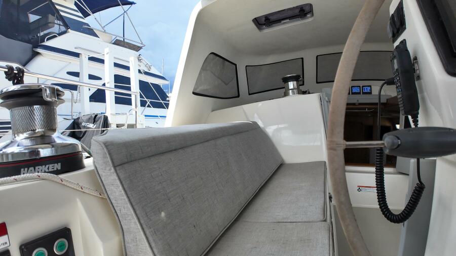 - Spacious salon with flexible configurations (settee, captain’s chairs, nav station)