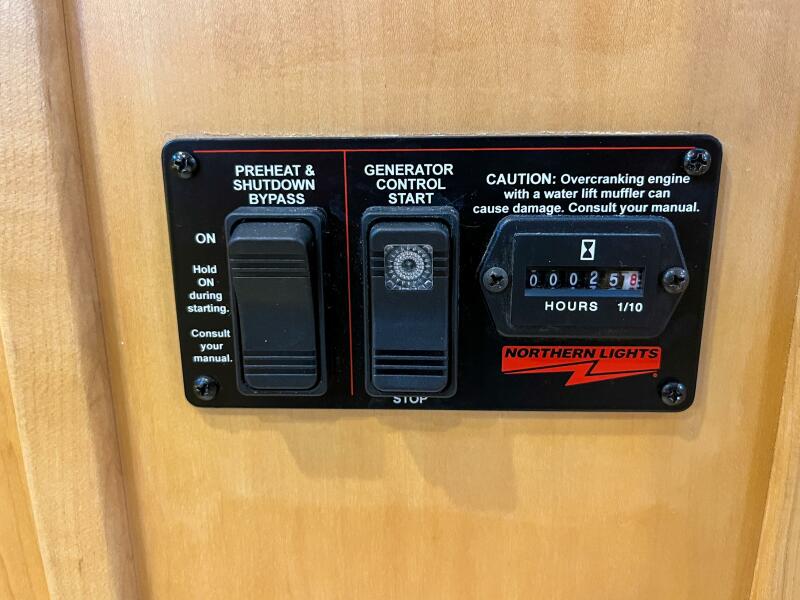 - Starboard side aft is a utility room with room for tools, spare parts, fenders, life jackets, dedicated engine oil change system, dual Racor filters, Northern Lights Generator (only 26 hours!), washer/dryer and watermaker