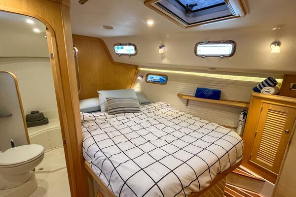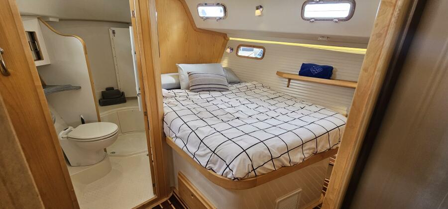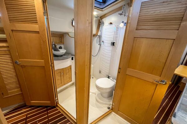 - 2 staterooms with en suite heads, both with stall showers and a bench