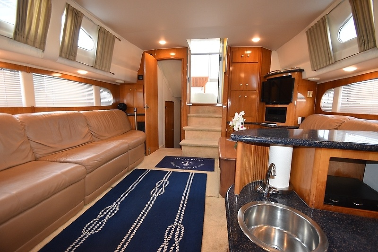 - Stbd side Couch is Very Long and has Two Built in recliners, perfect for TV viewing
