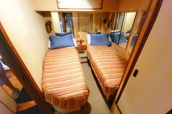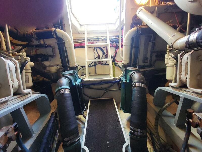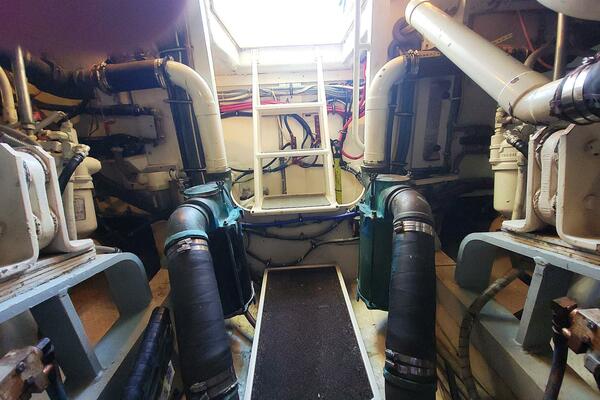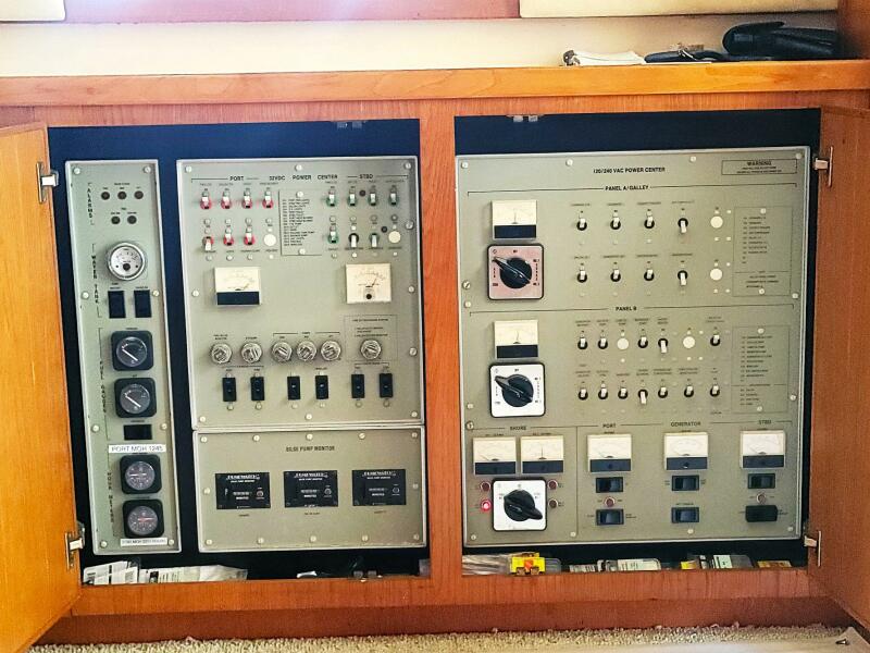Her powerful Detroit Diesel 8v92TA 735 HP engines have you comfortably cruising at 20 knots. The Port engine has 20 hours SMOH and Starboard has 600 SMOH. Reliable Allison Transmissions, Two generators one Starboard is 11 KW Kohler with 300 hours and the port is original and still working 8 KW Onan with 1,600 hours.