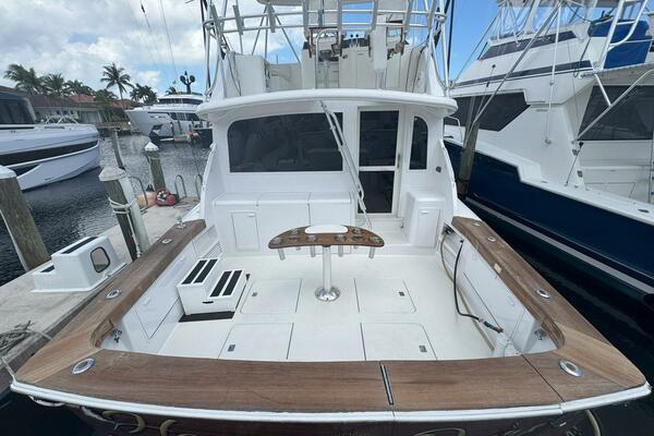 The latest in a series of 48-foot convertibles from Ocean Yachts, the most recent 48 Super Sport has a wider beam than her predecessors with a more rakish profile (the house is carried farther forward on the deck), greater bow flare, and a deeper forefoot for an improved head sea ride. Like all Ocean designs, her low-deadrise, tapered hull is quick to accelerate and fast across the water performance characteristics common to most Jersey-style fishing boats over the years. A pair of galley-up floor plans are offered in the Ocean 48, one with three staterooms and the other with two. Both layouts have walkaround queen berths in the master stateroom, and both have two heads with separate stall showers. The cockpit comes fully equipped with a bait-prep station, freezer, transom door, teak covering boards, and an in-deck fish box. Additional features include cockpit engine room access, wide side decks, and a spacious, well-arranged flybridge. Among several engine choices, early models with 535hp 6V-92s cruise at 24 knots (about 28 knots top).