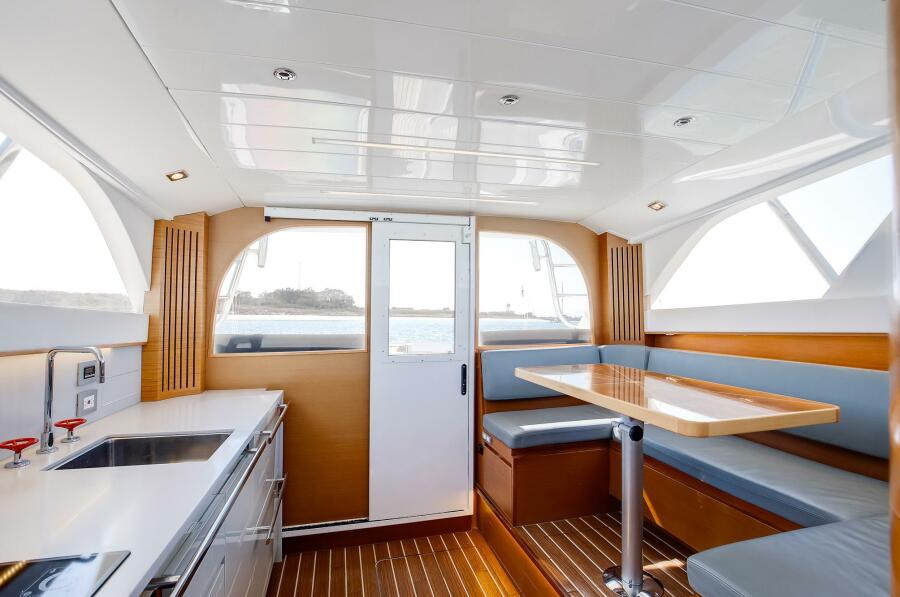 - Dinette to Port with Teak Gloss Table, Converts to Double Berth
