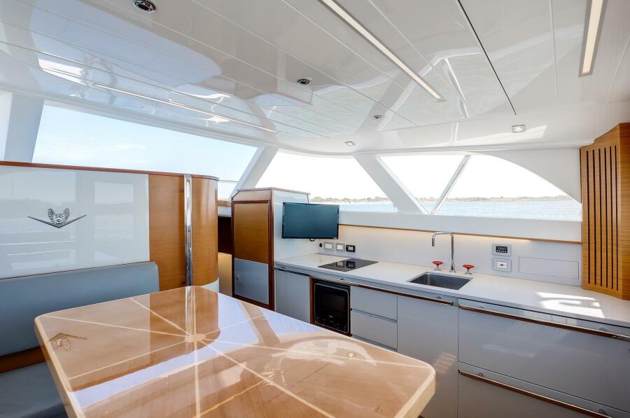 Sleeps 4 in the air conditioned cabin with Teak and Holly sole and a fully equipped galley.