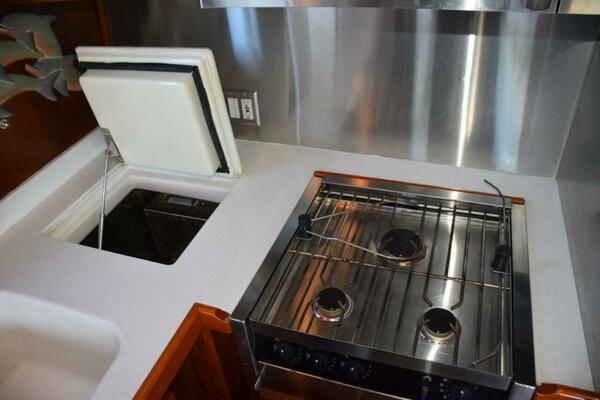 - The 48LRC iconic circular portlights are here and above the galley sink