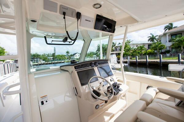 Step aboard the 2023 Boston Whaler 380 Outrage and experience the pinnacle of offshore capability blended with refined luxury. Designed for anglers and adventurers alike, this state-of-the-art center console boasts rare twin Mercury 600 HP Verado® outboards with joystick piloting, giving you superior control and blistering performance. From the expansive helm with cutting-edge electronics to the integrated hardtop with glass enclosure, every detail is crafted to deliver comfort, protection, and an exhilarating ride even in rough seas. Seakeeper Stabilizer equipped and a Fischer Panda generator.