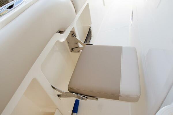 - Insulated storage compartment under aft facing seat with drain and insulated sealed lid (upgradable to livewell option)