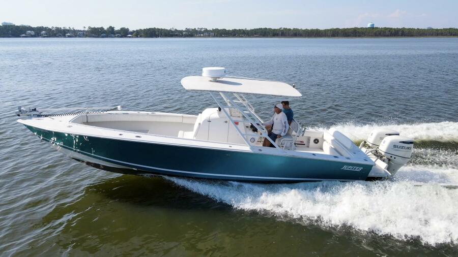 2003 31 Jupiter Open "Miss Millie II" is a striking example of offshore capability and custom style. This refitted beauty has been repowered with twin 2020 Suzuki 250HP 4-stroke outboards, delivering smooth, reliable performance for serious fishing or weekend cruising. Her custom-colored wrap sets her apart visually, while upgraded electronics ensure you're equipped with the latest tech at the helm. A Rhodan trolling motor adds precision for anglers, and the Rocket aluminum trailer makes transport effortless. With a 33’2” LOA and 9’6” beam, she offers a spacious, stable ride, complemented by a clean center console layout and a convenient onboard head. Located at Legendary Marine, Miss Millie II is turn-key and ready to impress — a rare blend of classic Jupiter craftsmanship and modern enhancements that make her a standout on the water.