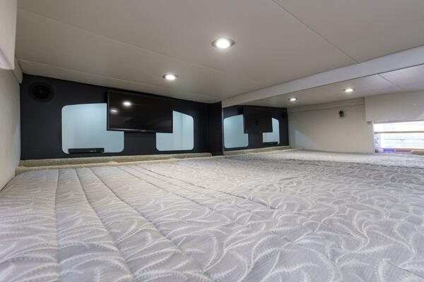 - Aft cabin stateroom/queen-size berth w/Sensus® memory foam mattress, full-width storage, cable TV receptacle, phone jack & 120V outlets
