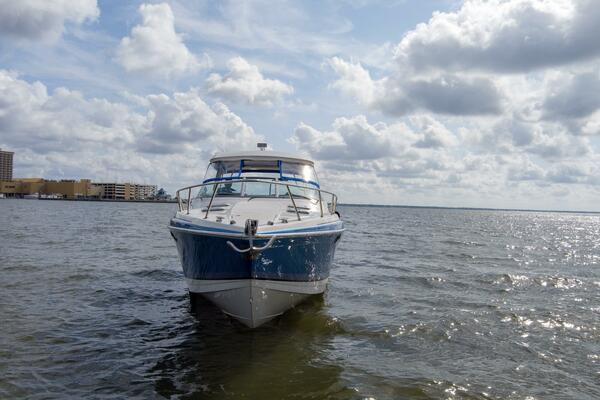 Bluebird has been a freshwater boat most of her life, and she shows. She is powered by twin low-hour Mercury Racing 520 engines. This cruiser is perfect for a fun day out on the water or an overnight with the family.