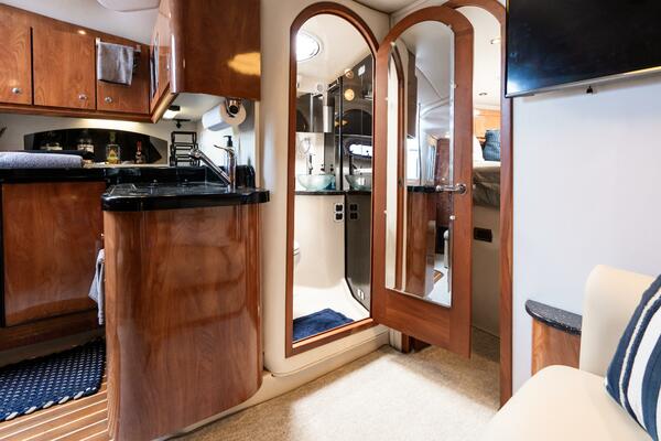The interior offers both comfort and functionality for extended cruising or weekend escapes: