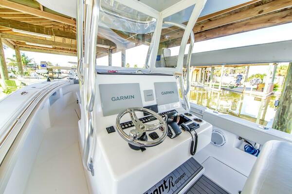 Meet the masterpiece of marine engineering — the 2023 Front Runner 33’ Center Console. This isn’t just a boat; it’s a statement of power, elegance, and unmatched performance. Equipped with twin Verado 300HP Racing Outboards (295 hours), this vessel offers an adrenaline-pumping ride with smooth, responsive control that’s fun and economical to operate. Like her bigger sisters, the 33 Center Console will have the same amazing ride and design, just in a smaller footprint. The expansive deck layout ensures there's room for everything needed for a day on the water, including five macerated in-deck fish boxes, transom seating, dual helm seats, and a console with a head. Whether it's family fun or serious fishing excursions, the 33 Front Runner does it all with style.