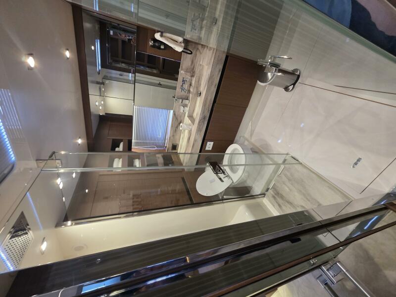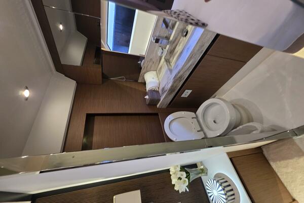 Private Owner's Suite: Located forward, this luxurious suite includes a king-sized berth, a comfortable sofa, a private walk-in closet, and large panoramic windows for a serene experience