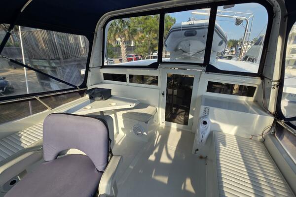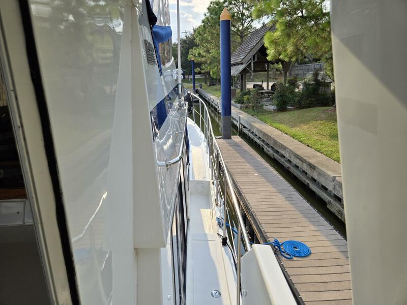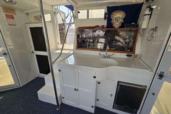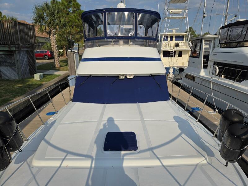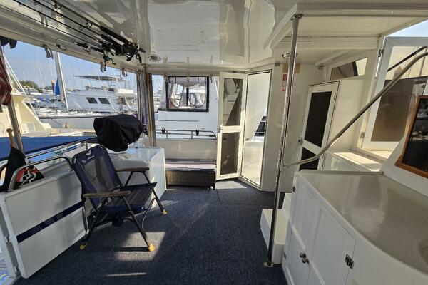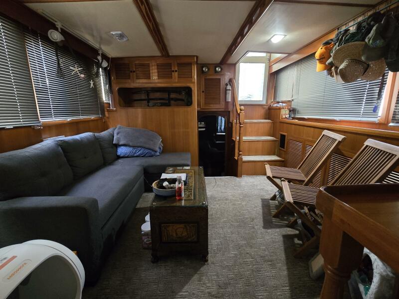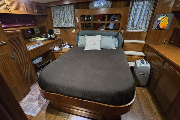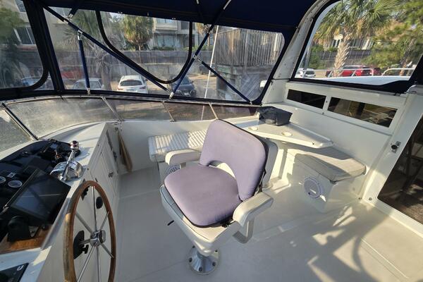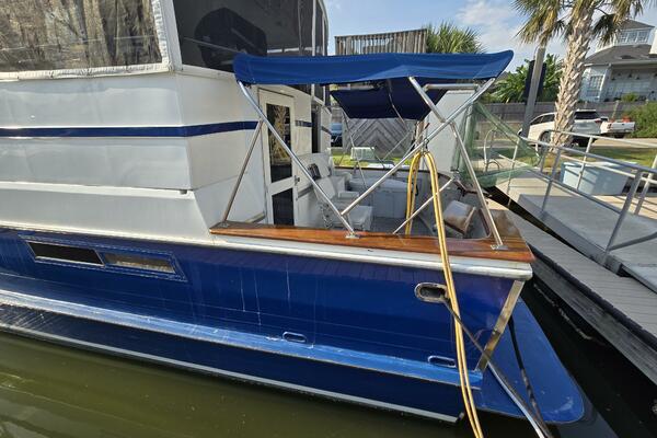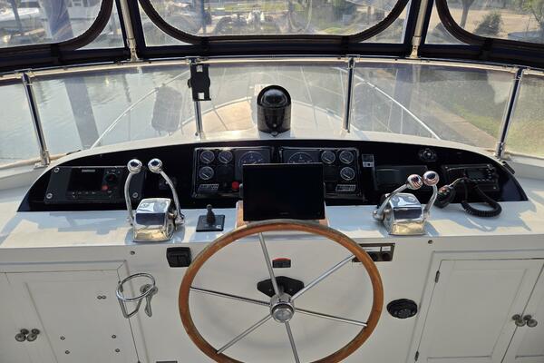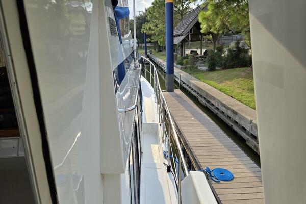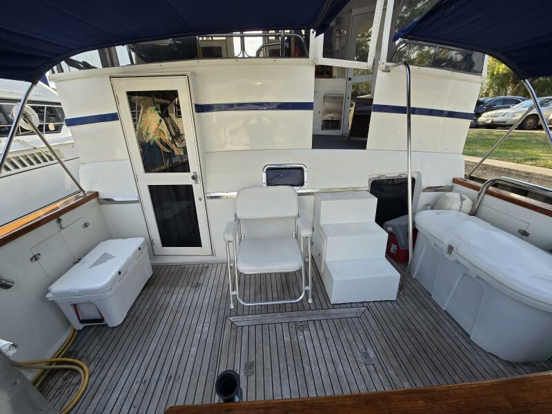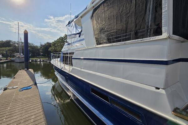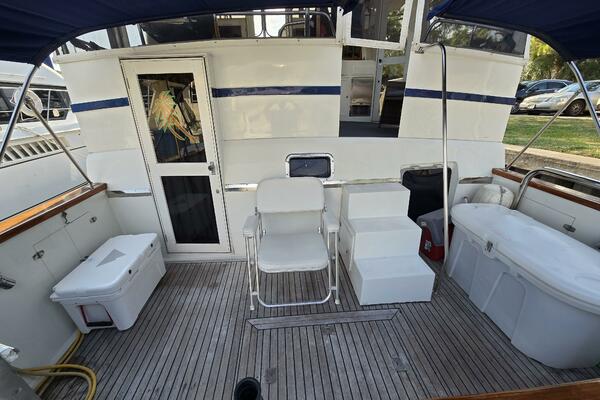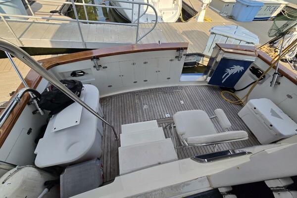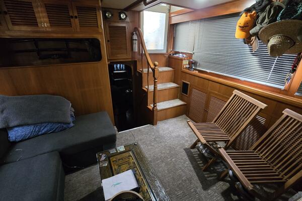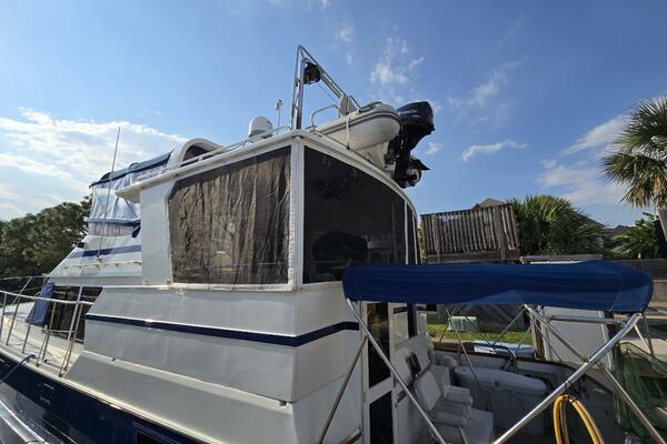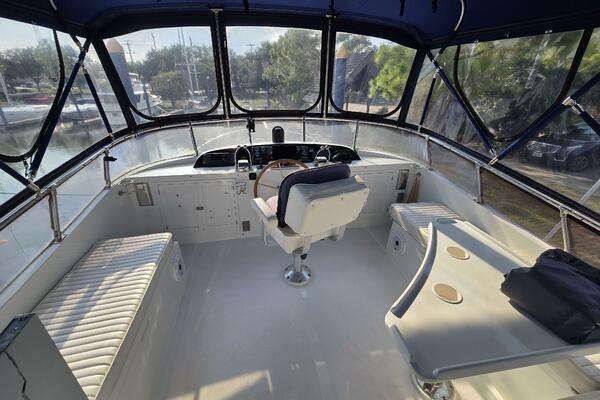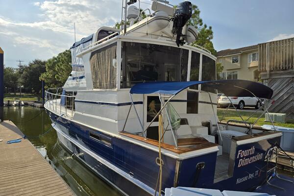 Layout: Fourth Dimension features an expansive flybridge, a full-beam owner's cabin, and a main salon with extensive teak woodwork and a galley. The interior is often praised for it's quality finish.