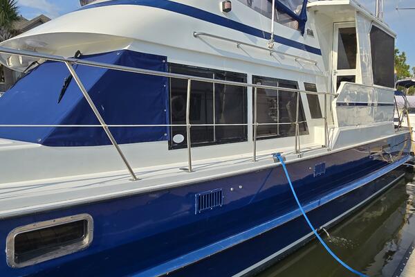 Design: A traditional double-cabin design with a trawler-style appearance. Forth Dimension includes an aft cockpit.