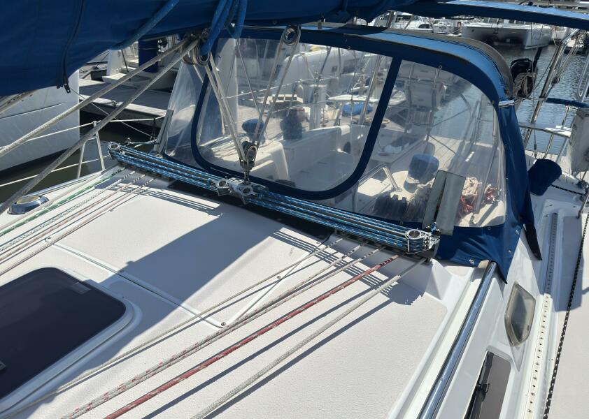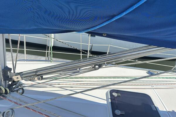- Garhauer long mainsheet traveler forward of dodger and led to cockpit