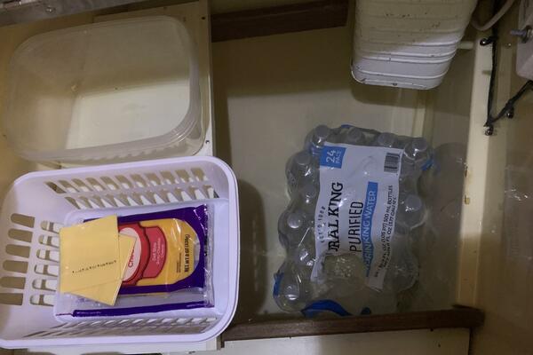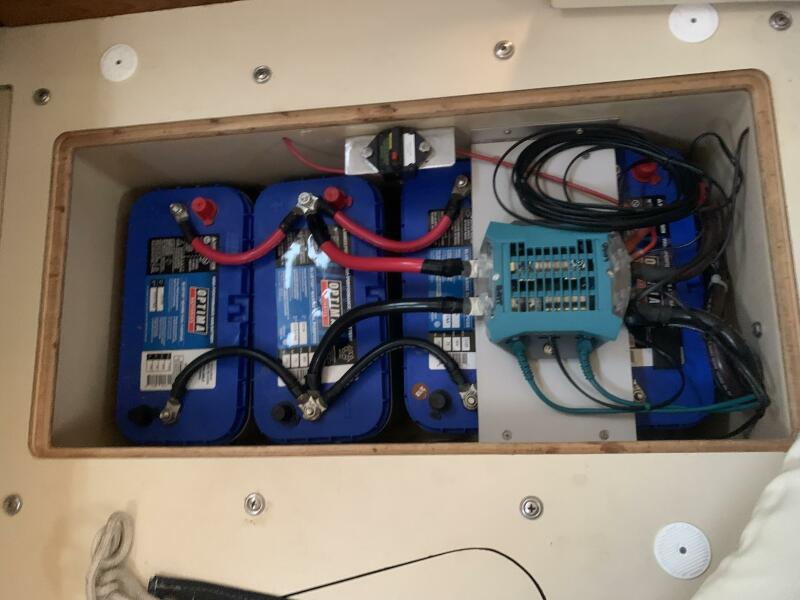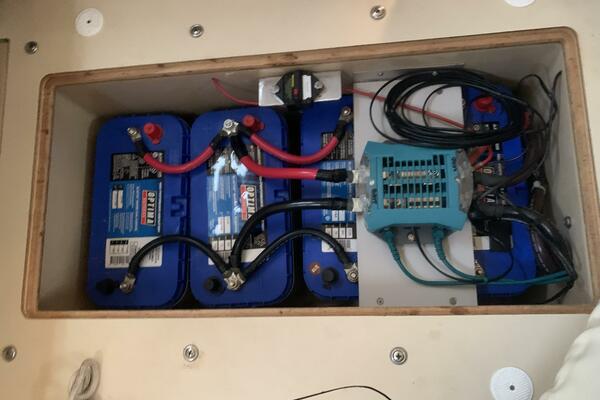 - 2 x 10 lb propane tanks and Solenoid (Nov 2024) in a starboard deck locker