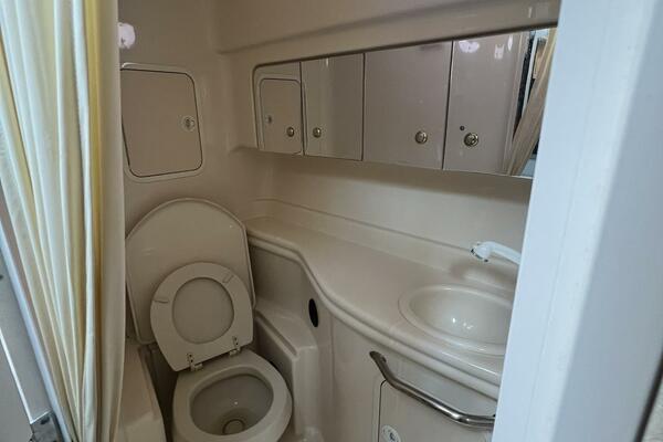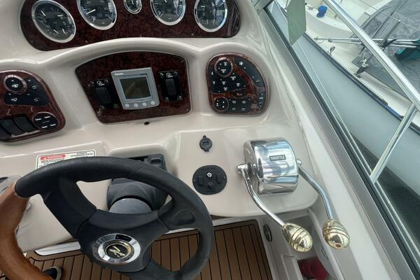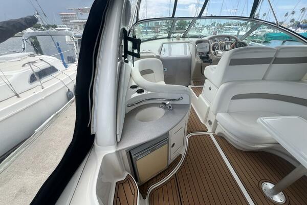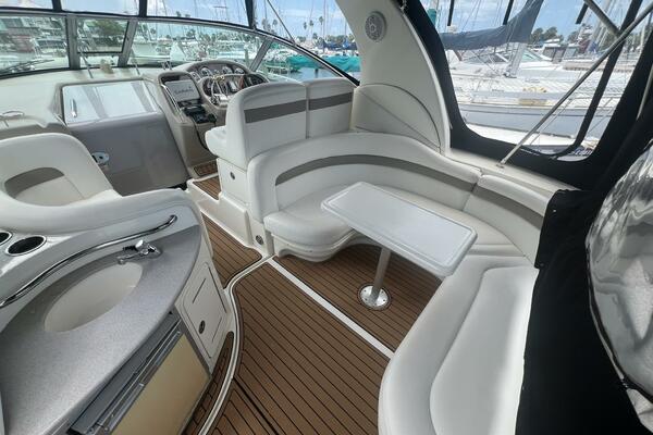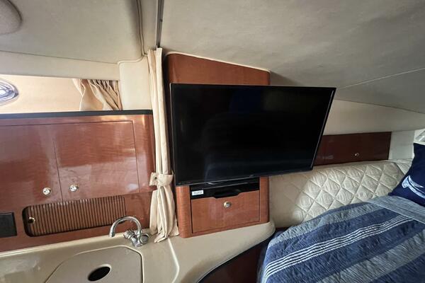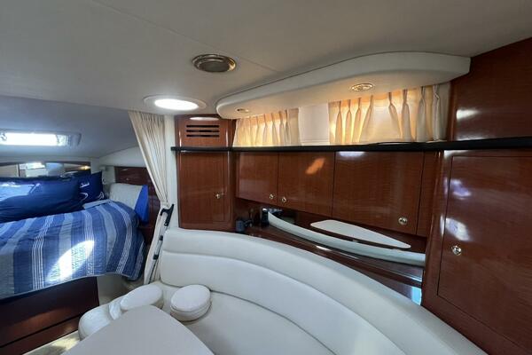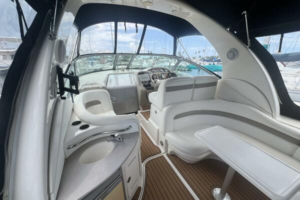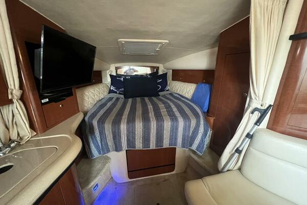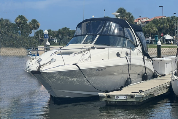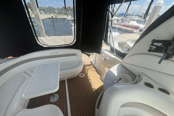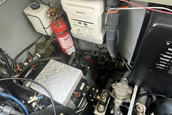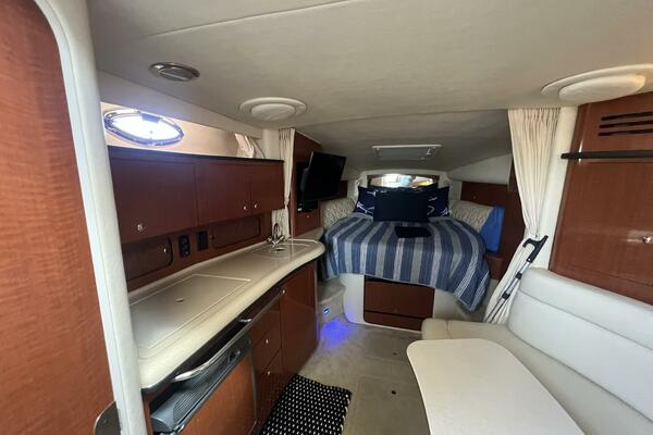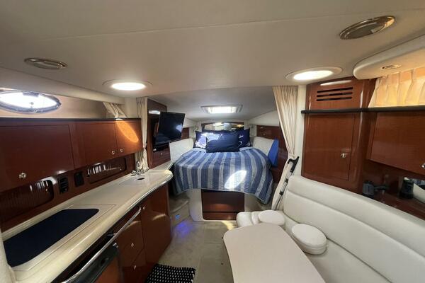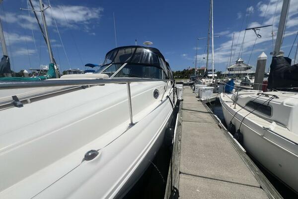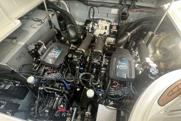 EXCELLENT CONDITION INSIDE AND OUT! ALL SOFT GOODS AND EISENGLASS ARE IN GREAT SHAPE. CLEAN ENGINE COMPARTMENT AS WELL. FACTORY OUTFITTED WITH A 5KW GENERATOR AND V-DRIVES. THE BOAT HAS SPENT ITS ENTIRE LIFE ON LAKE LANIER IN GEORGIA, AND WAS DELIVERED TO DAYTONA BEACH VIA TRAILER IN 2024. ENGINE SERVICE, GENERATOR SERVICE & NEW BOTTOM PAINT IN 2024.