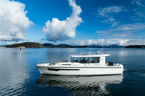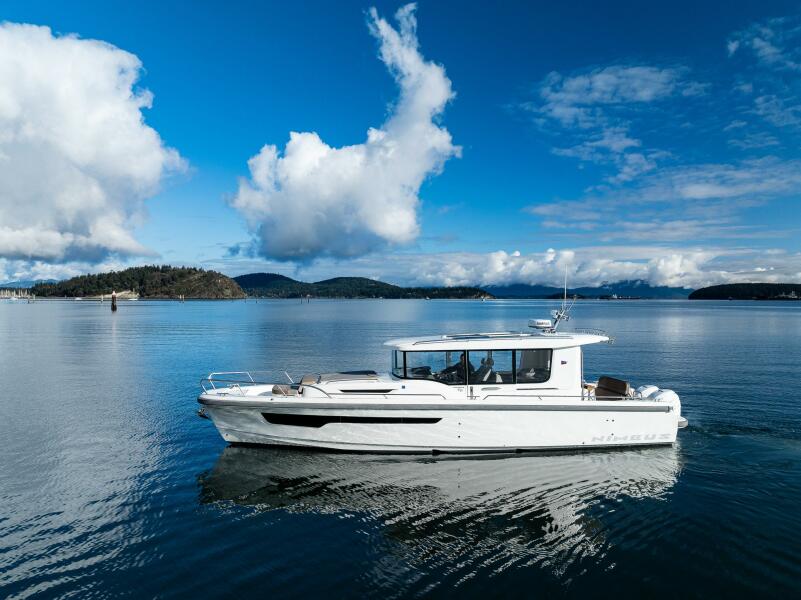 The Nimbus C-11 was designed to be all-purpose, rugged, fast, yet comfortable enough to be your normal day-to-day cruise. The C11 is a perfect vessel for the daily boater who uses the water as their method of transportation all year round, no matter the season. The pilothouse sets this model apart from most other boats in its class. There are shock mitigating helm seats as well as a passenger sofa all enclosed in a brilliant cabin with large windows. It even has an indoor galley and separate shower and head. There is seating in the bow as well as a sunpad for owners that use the C-11 as a pleasure boat along with plenty of room on both sides of the pilothouse to walk around with ease. In addition to the bow cabin, the C-11 also has a mid cabin with a double bed.