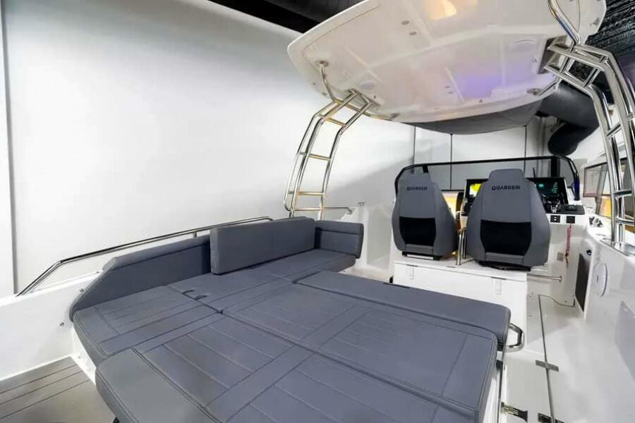 The Quarken 27 T-Top is an ideal fusion of exhilarating performance, sun protection, and comfort, designed for enjoying aquatic life with family and friends. This vessel exemplifies Nordic design, marked by elegance and intelligent functional features.
