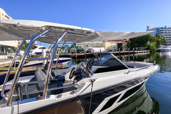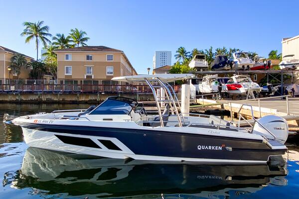 The Quarken 27 T-Top is an ideal fusion of exhilarating performance, sun protection, and comfort, designed for enjoying aquatic life with family and friends. This vessel exemplifies Nordic design, marked by elegance and intelligent functional features. Its roof provides excellent protection, especially with the bow and aft shades installed - ideal for south Florida sun! With its confident handling, stability, and predictability in various weather conditions, the 27 T-Top ensures a consistently smooth, safe and comfortable journey on the water.