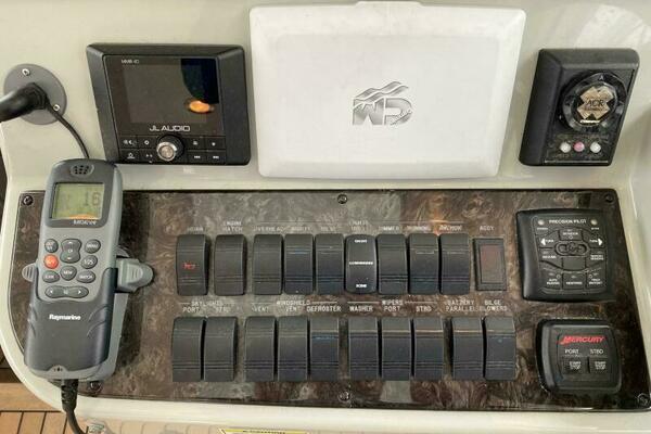 - Cockpit Air Conditioning, Full Size-Refrigerator, Wet Bar, Grill, Television, Speakers, & More! Recently Added/Updated Underwater Lights, Stereo System, 4 New Televisions, Tracvision, & More!