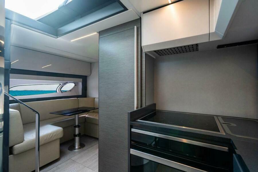 A possible alternative is that the VIP cabin, equipped with bathroom that can be used as day head - and a dinette facing the galley.
