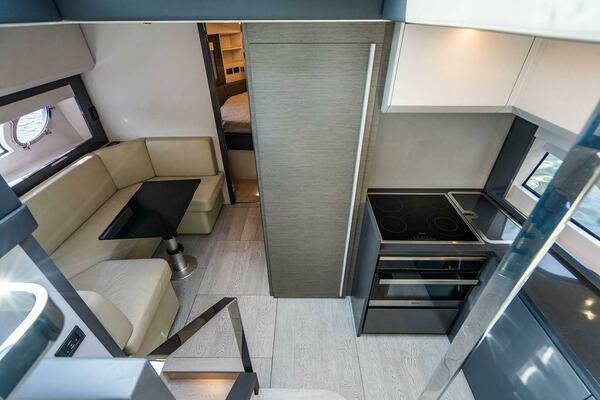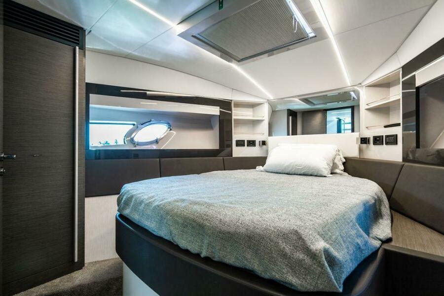 The 5X is the first Pershing below 60 feet where the owner can enjoy a full-beam master suite with an en-suite bathroom and a dinette in front of the galley.
