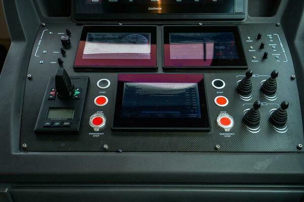 Upon request, an optional joystick can be added which allows enhanced maneuverability, this system, available for the first time on a Pershing, is called EASY DOCK and is the result of the consolidated technological partnership between Pershing and Top System. The EASY DOCK system will be exclusively available on the new coupé and further development of the system is guaranteed.