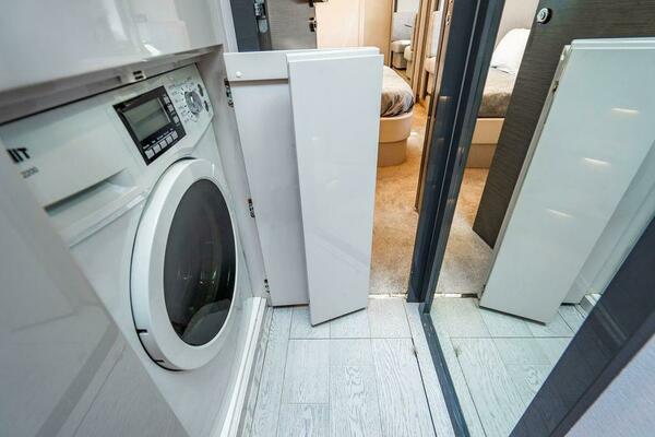 The Pershing 5X is available in two engine configurations which also involve a different engine room arrangement. The owner can choose from twin VOLVO IPS950 D11 with 725hp with Z-drives and counter-rotating propellers (cruising speed of 30 knots, maximum speed of 36 knots - preliminary data). Additional integrated solutions offered by Volvo can be installed on board.