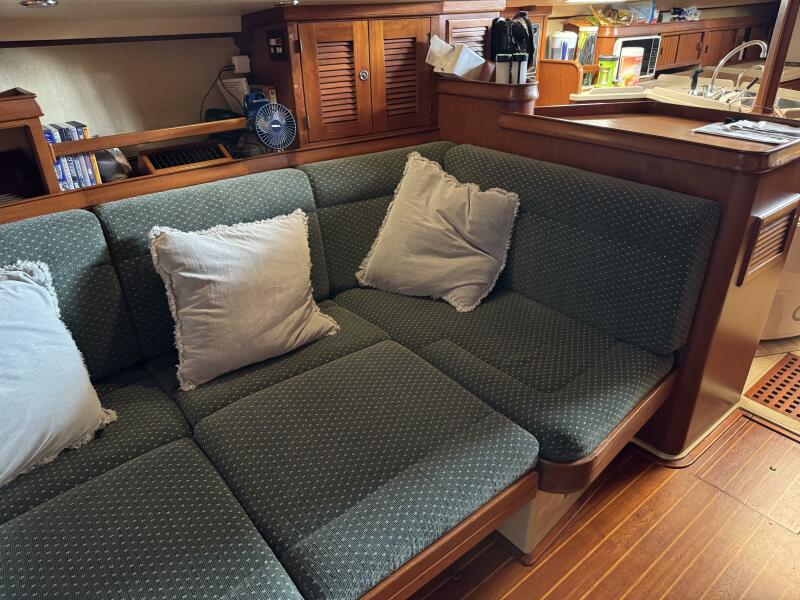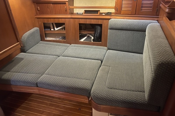 - To starboard is a full-size L-shaped settee that converts to a double berth for guests.