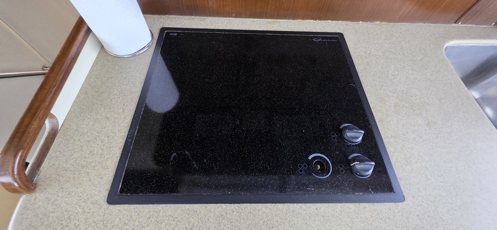 - Galley: Equipped with Isotherm refrigeration, Princess Gourmet cooktop, and stainless steel sink.
