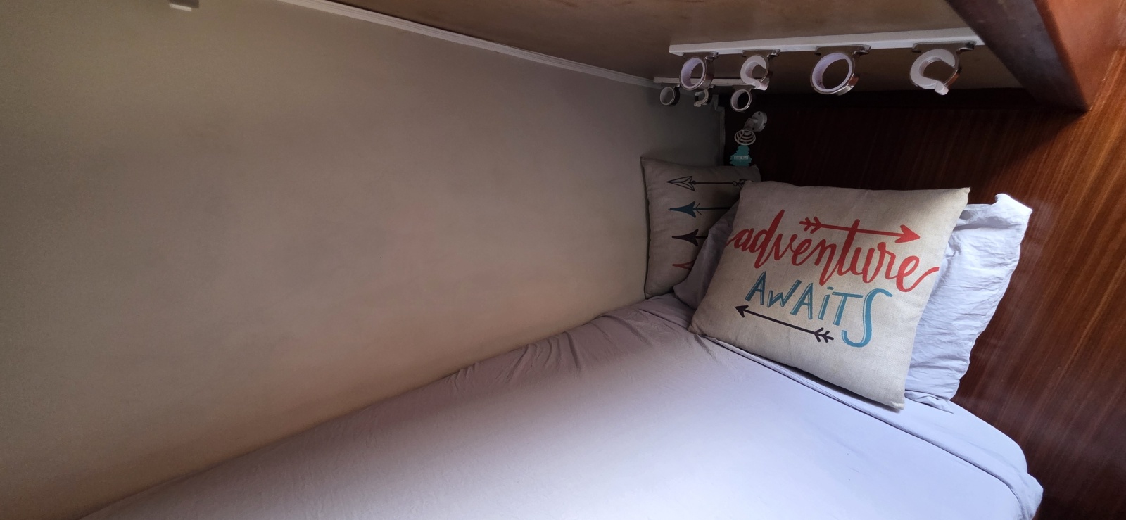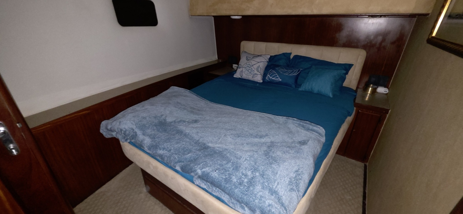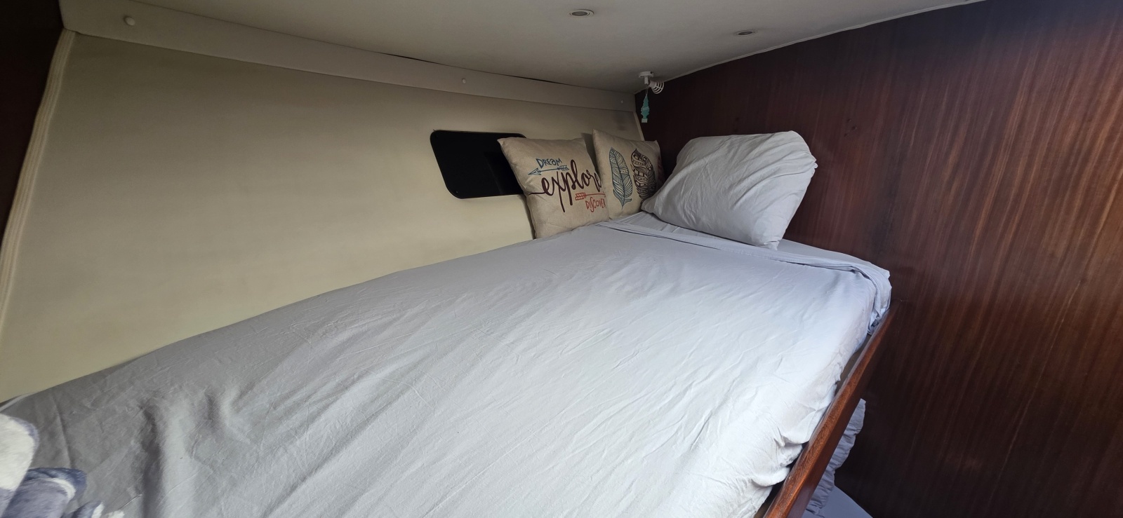 - Guest Stateroom: Twin bunks with easy access to the day head and flat-screen TV.