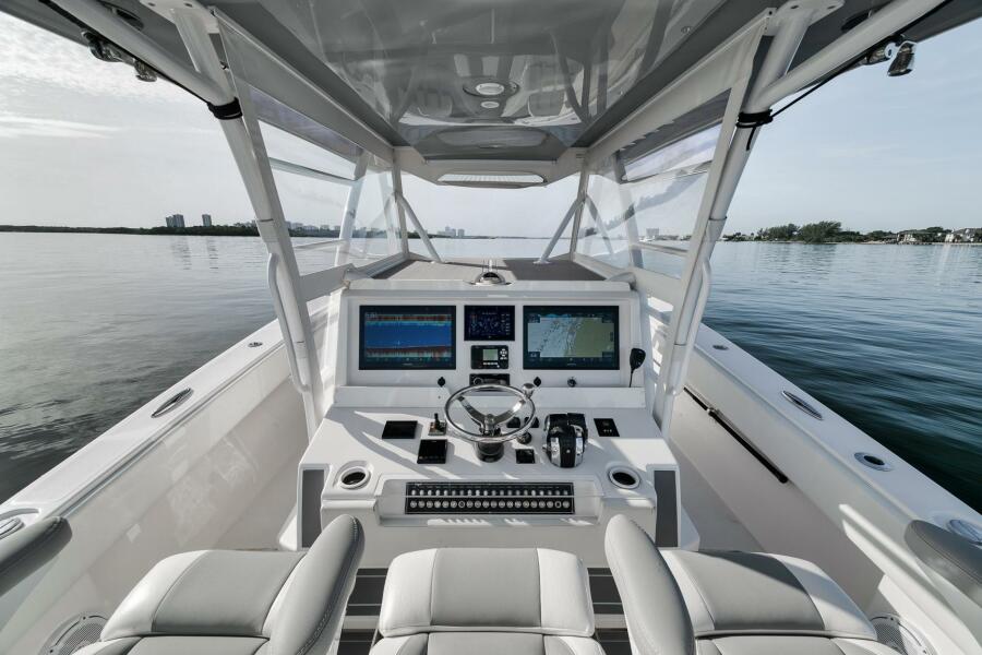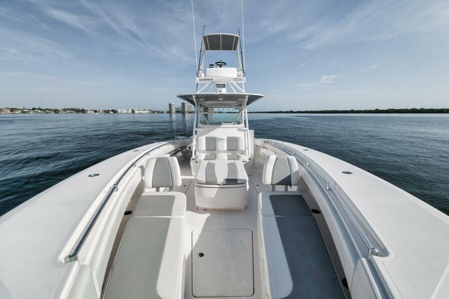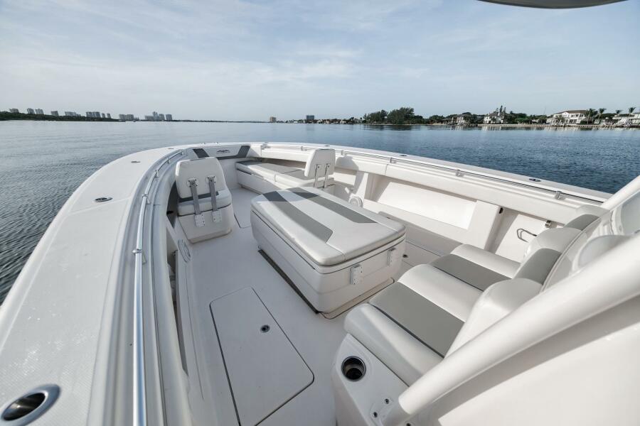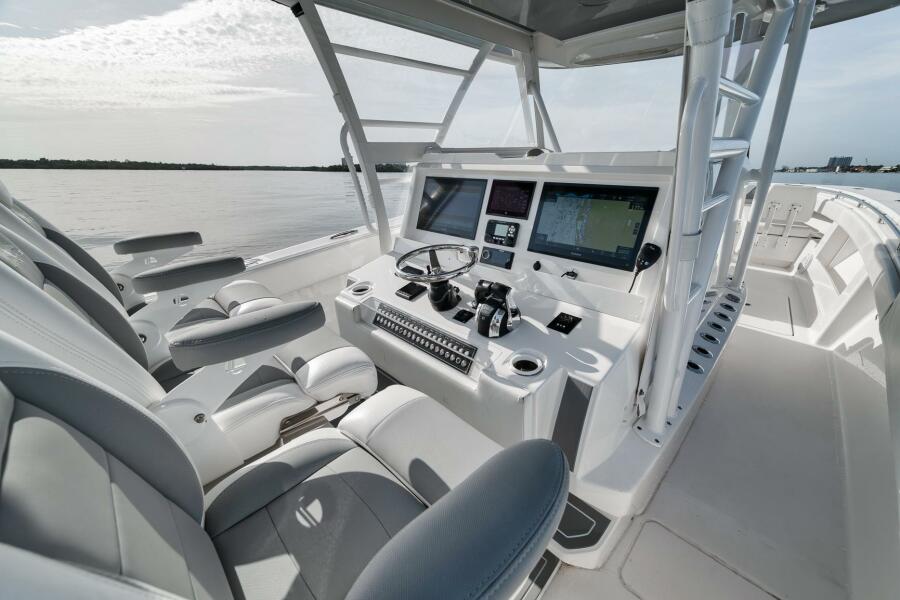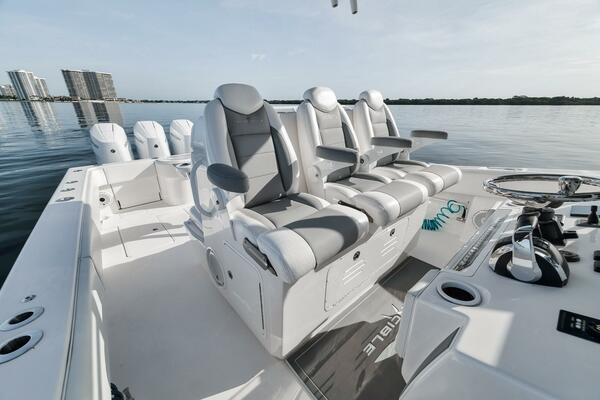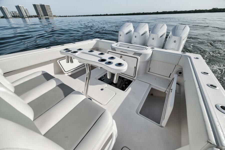 This 2020 42’ Invincible is turnkey and loaded with all the right options. Recently repowered with quad Mercury V10 400s showing just 97 hours, she delivers incredible performance and reliability. Her extensive spec includes a folding second station, full Garmin electronics suite, bow thruster, forward seating, coffin box, and a rocket launcher to keep the cockpit clean and ready for action. Freshly updated with new combing bolsters and covers (10/25), she shows exceptionally well and is the perfect blend of offshore fishability and comfort.