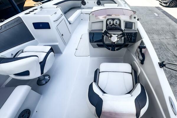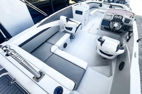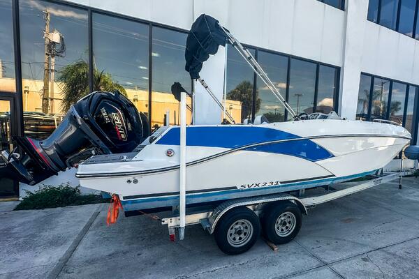 This 2022 Starcraft SVX 231 OB DH features silver upholstery and provides a black Bimini top for sun protection. This deck boat has something for everyone, whether you prefer water activities, cruising, or just sitting on the sandbar. Powered by a robust Yamaha VF250XB engine, with only 50 hours.