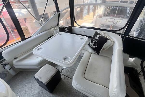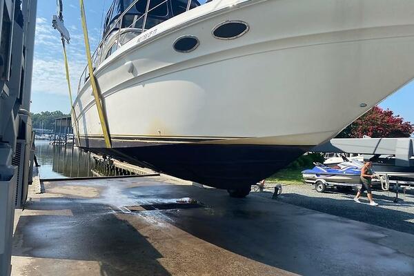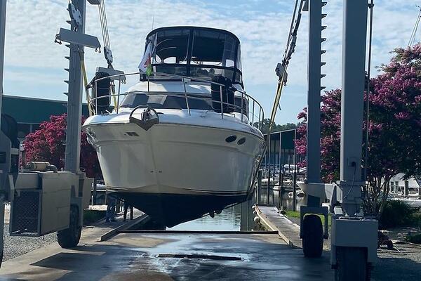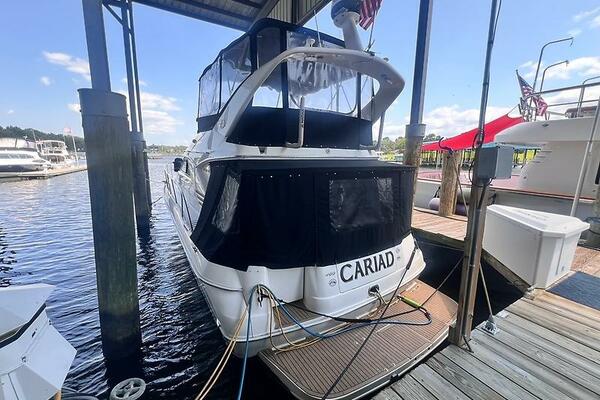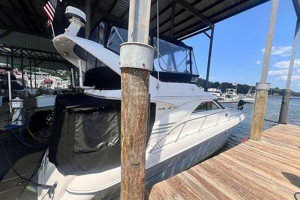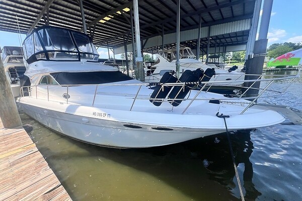 One of Sea Rays most popular models! Extremely well cared for - shed kept on the nearly all fresh Sassafras River for the last 12 years. Seller says "Cat 3116 engines Stbd approx. 900 hrs. Port 52hrs. (Belt on water pump port engine shredded and engine overheated)
