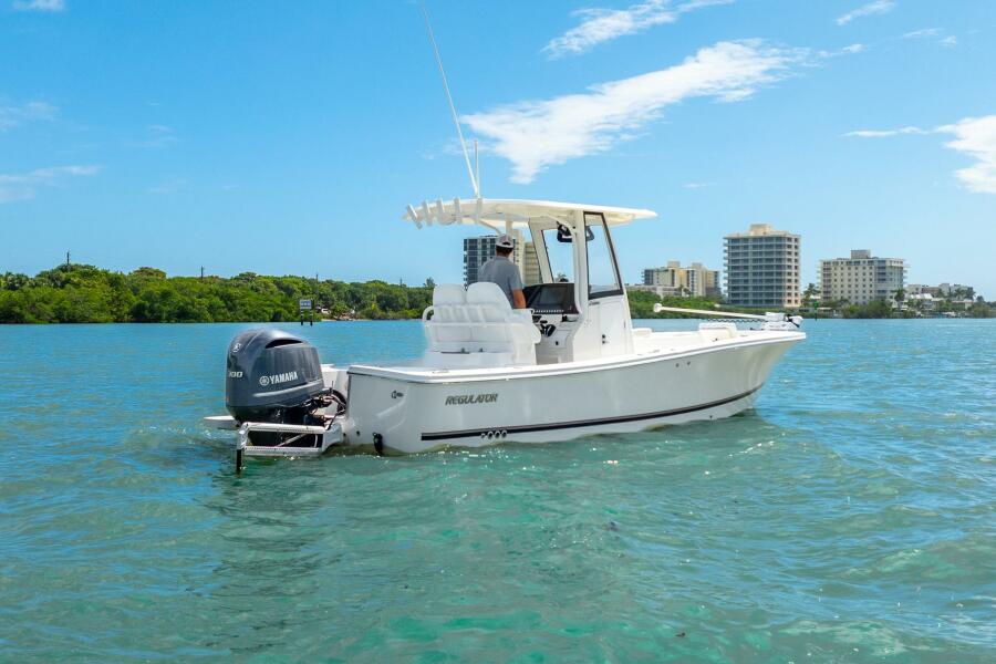 2021 Regulator 26XO center console with Yamaha 300hp 4-stroke (low hours). Reaches 48 knots, cruises mid-30s. Deep-V hull, shallow draft; she's great for offshore or bays. Features Garmin electronics, livewells, fish boxes, power pole, comfy seating, and 2021 Magic Tilt dual-axle trailer.