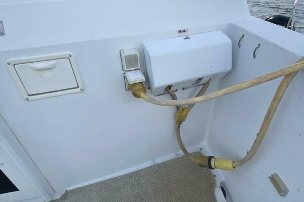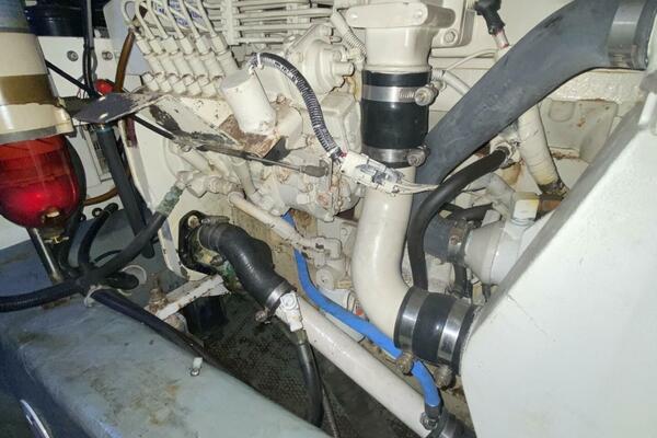 Exhaust Line: Side Exhaust, covered stainless steel elbow to molded fiberglass and raw water cooled.