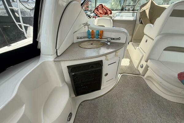 Introducing the stunning 2007 Sea Ray 320 Sundancer, a remarkable cruiser that perfectly blends elegance and performance. With a length of 32 feet, this vessel boasts a sleek fiberglass hull designed in a Deep Vee shape, ensuring a smooth and stable ride on the water. Powered by twin MerCruiser 5.7L MPI engines, each delivering an impressive 300 horsepower, this boat is equipped for thrilling adventures. The inboard/outboard configuration and stern drive provide excellent maneuverability, making it a joy to navigate. Designed for comfort, the 320 Sundancer features a well-appointed head, enhancing the onboard experience. Its thoughtful layout and spacious design make it ideal for entertaining or relaxing on the water. This used model has been well-maintained, with only 637 and 638 hours on the engines, promising many more enjoyable outings ahead. Experience the perfect blend of luxury and performance with the Sea Ray 320 Sundancer.