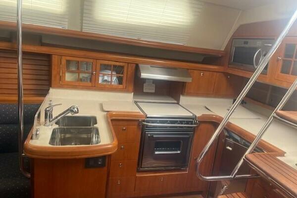 There are two very private and comfortable suites tor the owner and their special family and guests. The Saloon is midship and with its large table, settees and great ventillation. It is the perfect place for relaxing and entertaining. The Galley is large with plenty of storage and work space to feed and entertain the demanding crew. The cockpit further extends the saloon's social area while providing a safe, efficient and comfortable sailing platform with lots of well designed room.