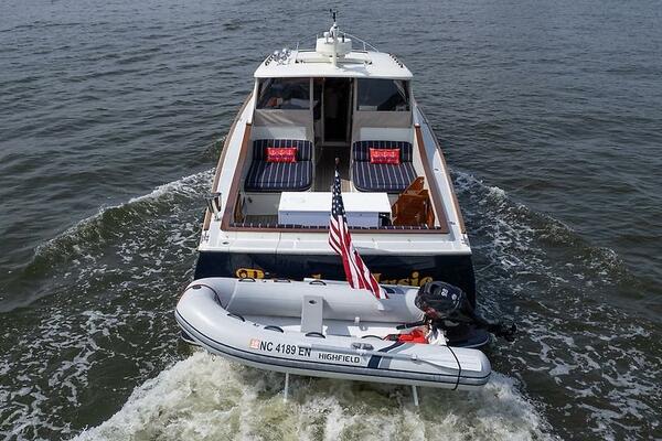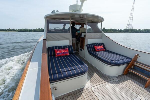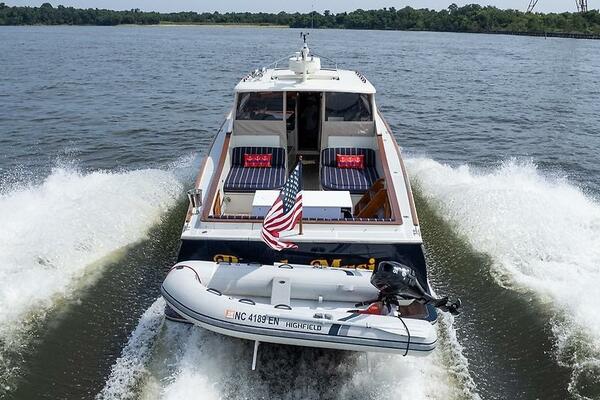 Designed in collaboration with renowned Gregory C. Marshall Naval Architects, the hull provides unmatched stability and comfort in challenging seas, while still delivering exhilarating speeds. With a length overall of 40’7” and a 12’2” beam, every inch of this yacht is thoughtfully utilized, offering luxurious, maximized interior space and an intuitive layout.