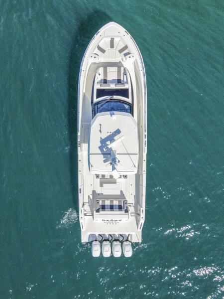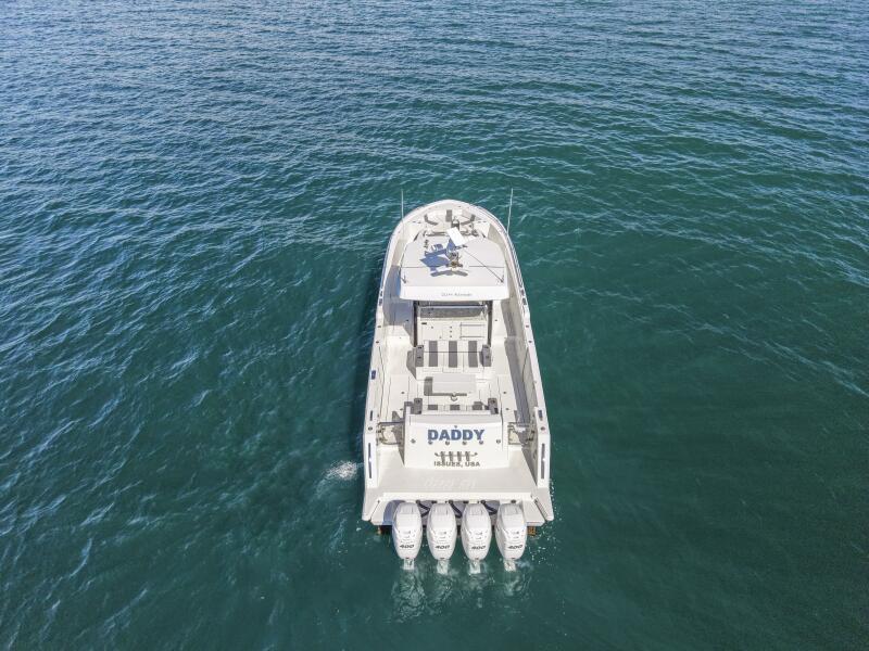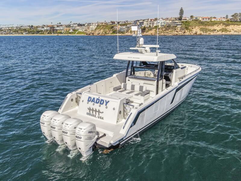 The 2021 Ocean Alexander 45 Divergence “DADDY ISSUES” is a high-performance luxury center console built for owners who want serious offshore capability combined with the comfort and systems typically found on much larger yachts. Powered by quad Mercury Verado 400 outboards, this 45’ platform delivers exceptional speed, reliability, and range, making it equally suited for offshore runs, island cruising, diving trips, or entertaining on the water. With 607 gallons of fuel capacity, the Divergence offers impressive cruising range and the confidence to comfortably run long distances offshore. Joystick piloting with Mercury SkyHook and an integrated bow thruster provide precise low-speed maneuverability, making docking and tight marina handling simple even for short-handed crews.